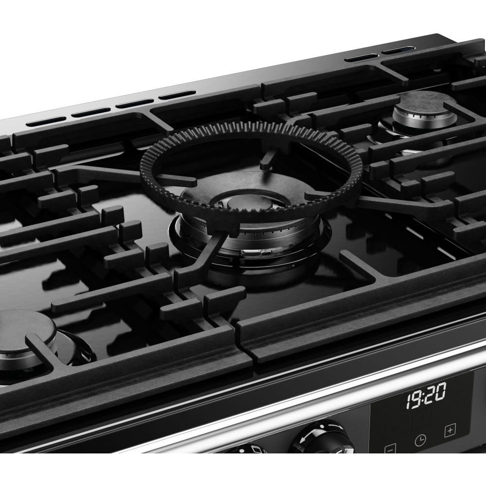 90cm Deluxe dual fuel range cooker with a 5 burner gas hob. Features include: cast iron pan supports, a 4kW PowerWok™ burner, conventional top oven & Maxi-Grill™ variable rate electric grill with telescopic sliders, 13 setting multifunction main oven with TrueTemp™ digital thermostat and rapid pre-heat. This model also includes the large capacity Titan™ twin fanned oven and the PROFLEX™ Splitter. Other features include the easy to read Maxi-Clock™ LED touch control programmer, Pro-Trac™ double-extension telescopic sliders, Steam & Infuse™ cooking accessory and cast iron griddle & wok cradle. All ovens are A rated for energy efficiency
