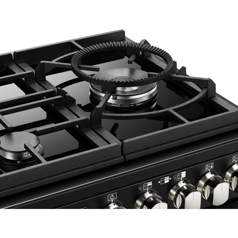 90cm Deluxe dual fuel range cooker with a 5 burner Gas-Through-Glass hob. Features include: cast iron pan supports, a 5kW PowerWok™ Plus burner, conventional top oven & Maxi-Grill™ variable rate...