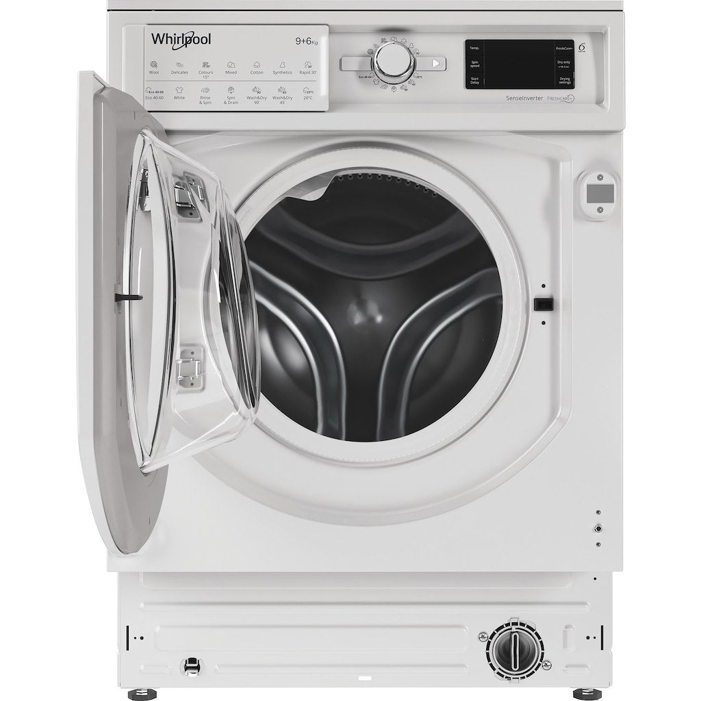 This Whirlpool integrated Washer Dryer features: white Outstanding 9kg washing capacity. Spacious 6kg drying capacity. Exclusive 6th SENSE technology uses sensors within the drum to assess how dirty your laundry is, the cycle is automatically adapted, reducing detergent wastage. The sensors also detect the temperature and humidity in each load, adapting the cycle for super soft results while saving up to 50% in energy, water and time. A fast, resource-efficient 1400 revolutions per minute spin speed.