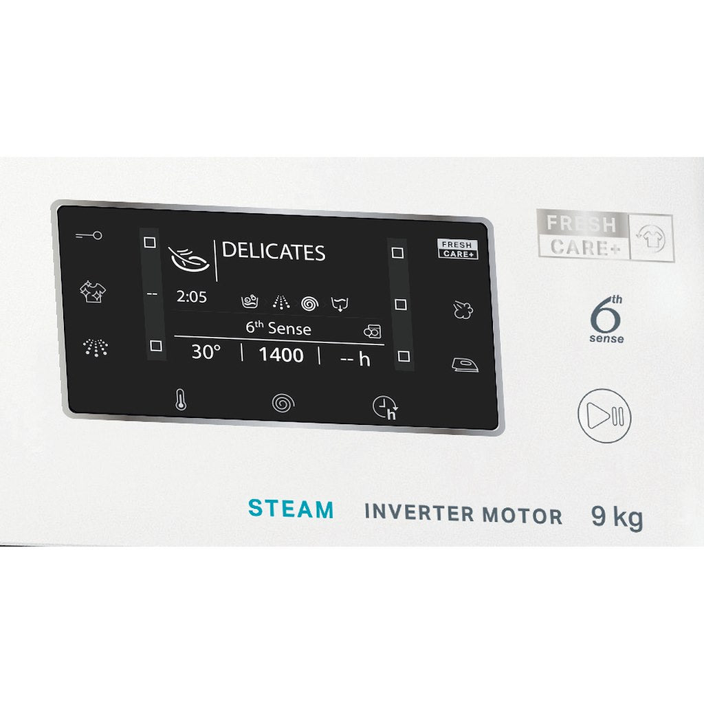This Whirlpool Washing Machine features: white A spacious, large 9kg capacity. A fast, resource-efficient 1200 revolutions per minute spin speed. Exclusive 6th SENSE technology, uses sensors within the drum to assess how dirty your laundry is, the cycle is automatically adapted, saving up to 50% on energy, water and time, as well as reducing detergent wastage. Outstanding A+++ energy rating, effectively reducing energy consumption by 30%.