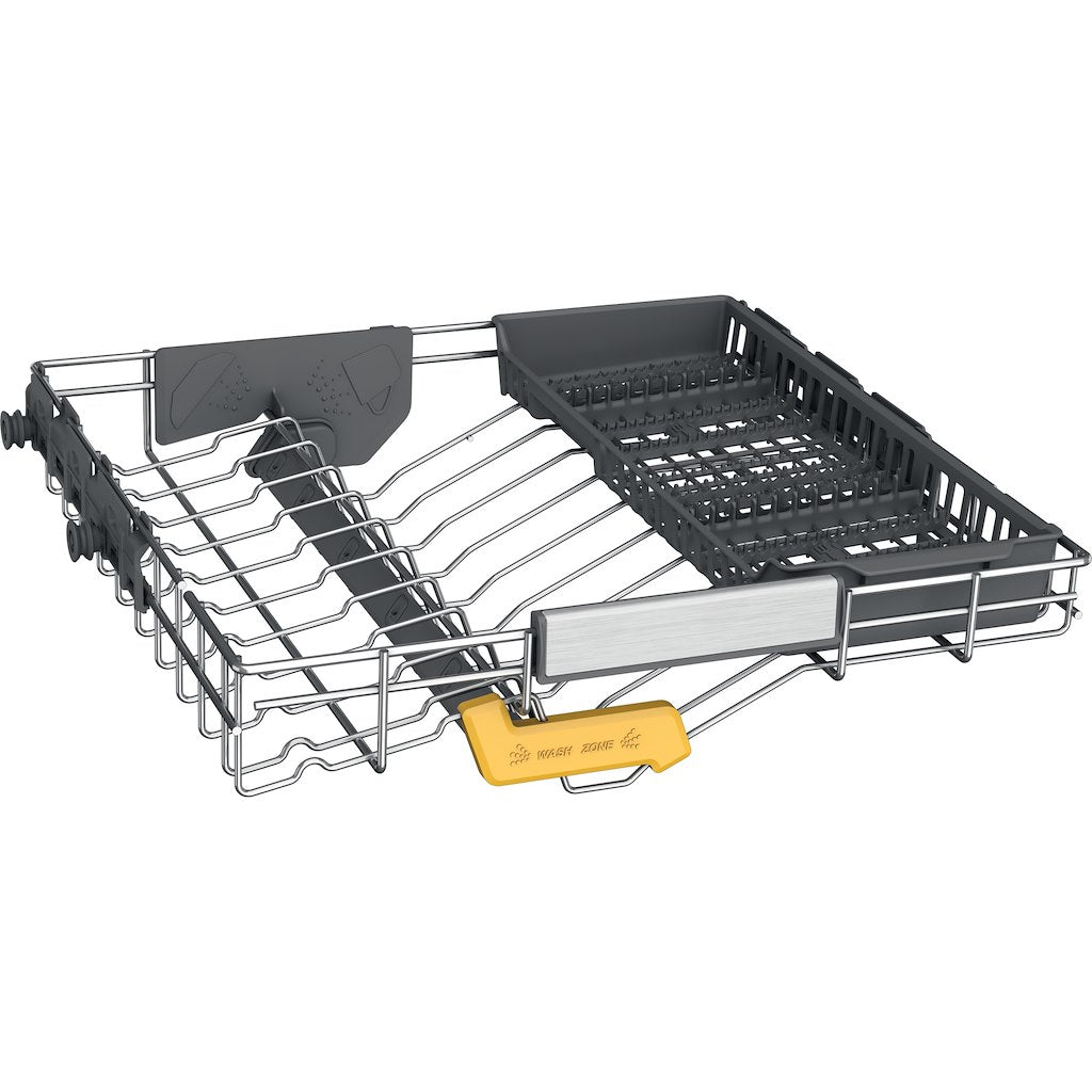 Load it all and think less with the Whirlpool W8I HP42 L UK built in dishwasher. This 14 place setting capacity model features our most intuitive solution for effortless loading thanks to the unique SpaceClean 3rd rack. The deeper 3rd rack with powerful integrated water jets* allows you to load even full size bowls, glasses and mugs in the rack itself. No matter what the occasion, you'll find room for everything thanks to the Maxi Space tub, which offers 10%** more usable space within the dishwasher. The C energy rated dishwasher, which uses just 9.5 litre of water with every load, also includes 6TH SENSE technology to automatically senses how dirty the dishes are and adapt the cycle time and water pressure accordingly. This technology ensures brilliant cleaning performance with up to 40%** savings in water and energy.