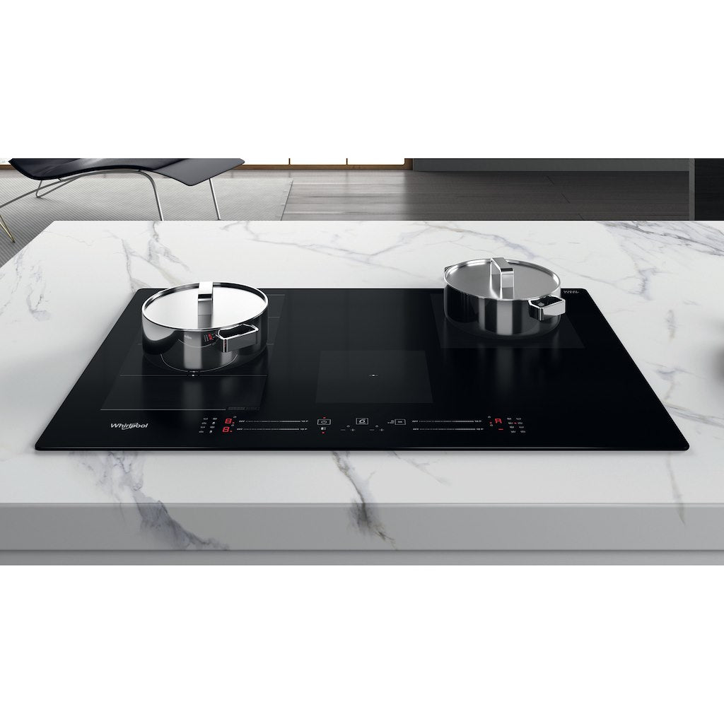The Whirlpool WF S3977 NE induction hob offers four cooking zones for fast, efficient and intuitive cooking. The FlexiCook system automatically senses the pan, allowing you to move it across the whole flexible cooking zone to whenever you need with ease. There's also an intuitive slider, for effortless control of your appliance's settings. Simple to keep clean by using just a damp cloth, the Whirlpool WF S3977 induction hob is the perfect addition to any modern kitchen.