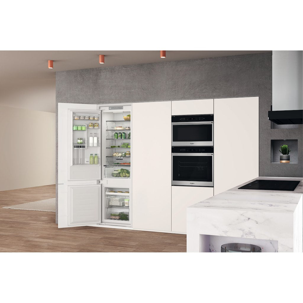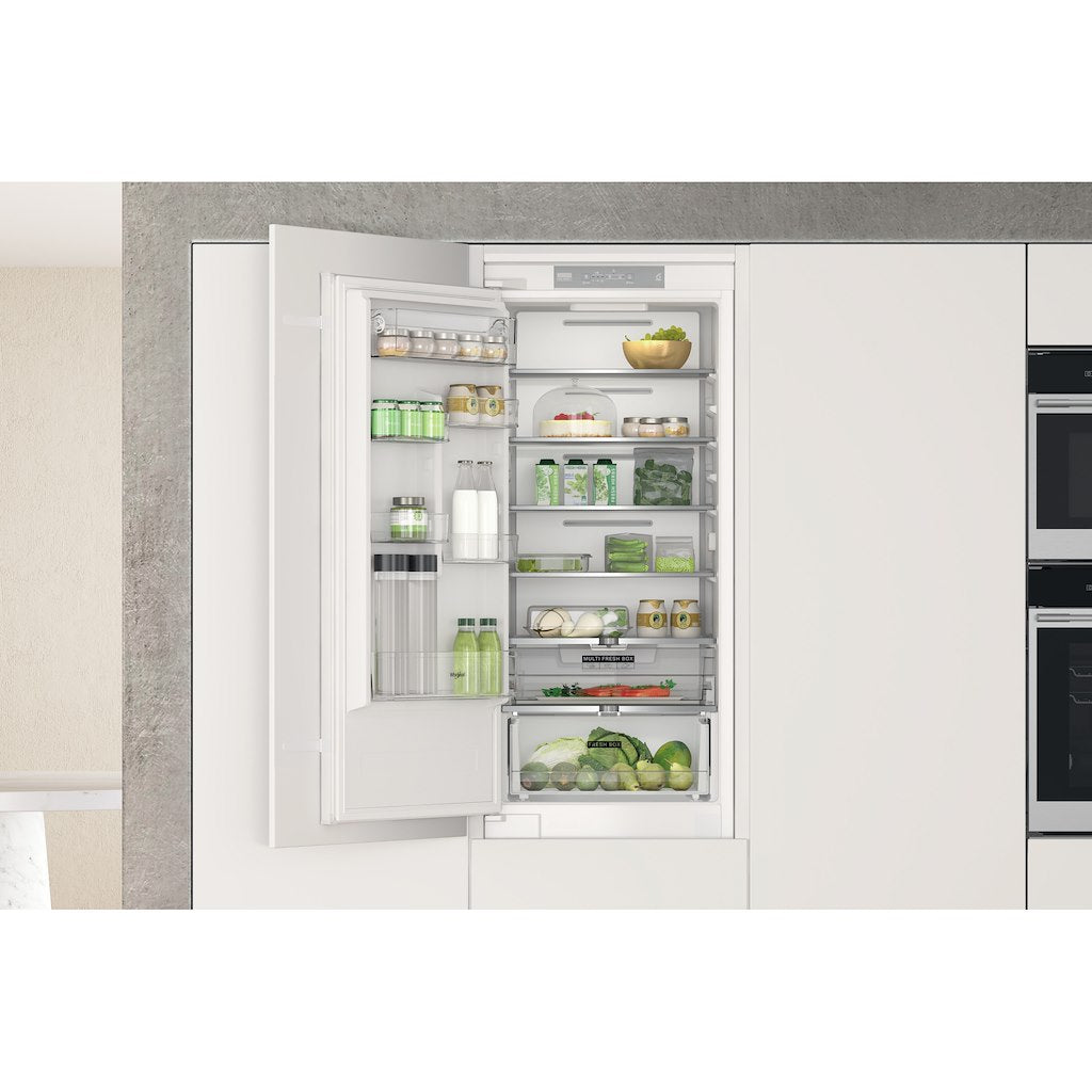 This Whirlpool built in Fridge Freezer features: white Mini fridge freezer perfect for a small space. Glass shelves, providing both robustness and elegance. A fan that provides a smooth and even flow of air in your appliance's cavity, for enhanced ventilation. 6th SENSE uses sensors within the cabinet monitor and adapt temperature according to the real need of the fridge freezer. By correcting these levels five times faster than in conventional units, you can enjoy long lasting freshness in all your ingredients and produce.