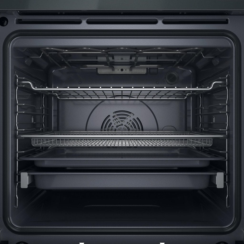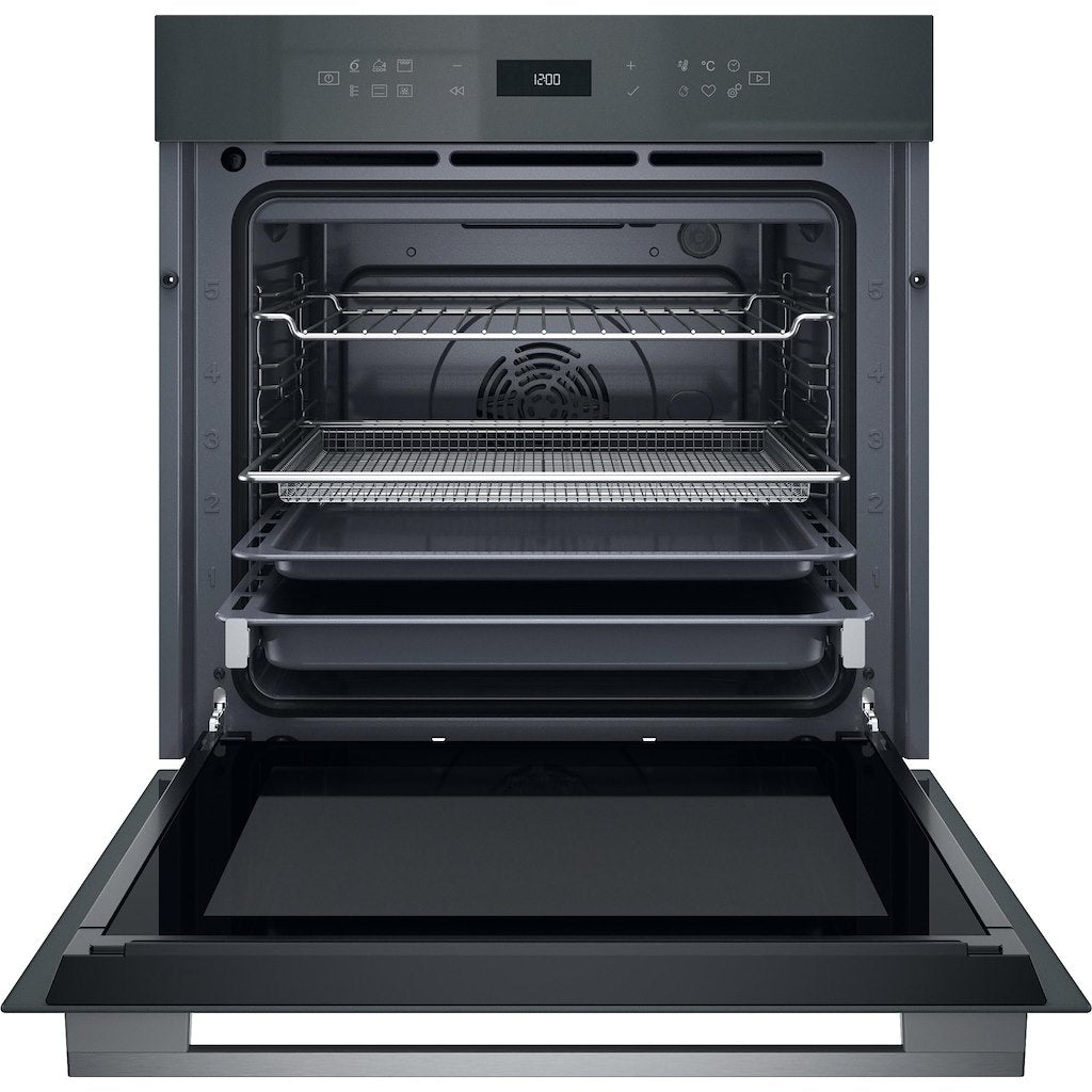This Whirlpool built in Oven features: advanced electric technology allowing you to cook dishes saving energy. Halogen lamp allowing a more energy-efficient performance. Exclusive 6th SENSE technology, that allows you to pick among a variety of pre-programmed recipes, and your oven will automatically adjust cooking, temperature and time settings, to ensure perfect results. Oven door with soft-close design, for increased ease of use. Ready2Cook function, removes the need to pre-heat, a powerful convection system within the oven quickly reaches the right temperature to cook.