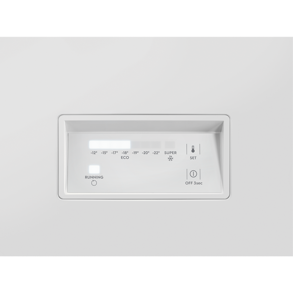 With the electronic control you can easily control your freezer functions. The convenient display offers effortless access to temperature and other general settings.