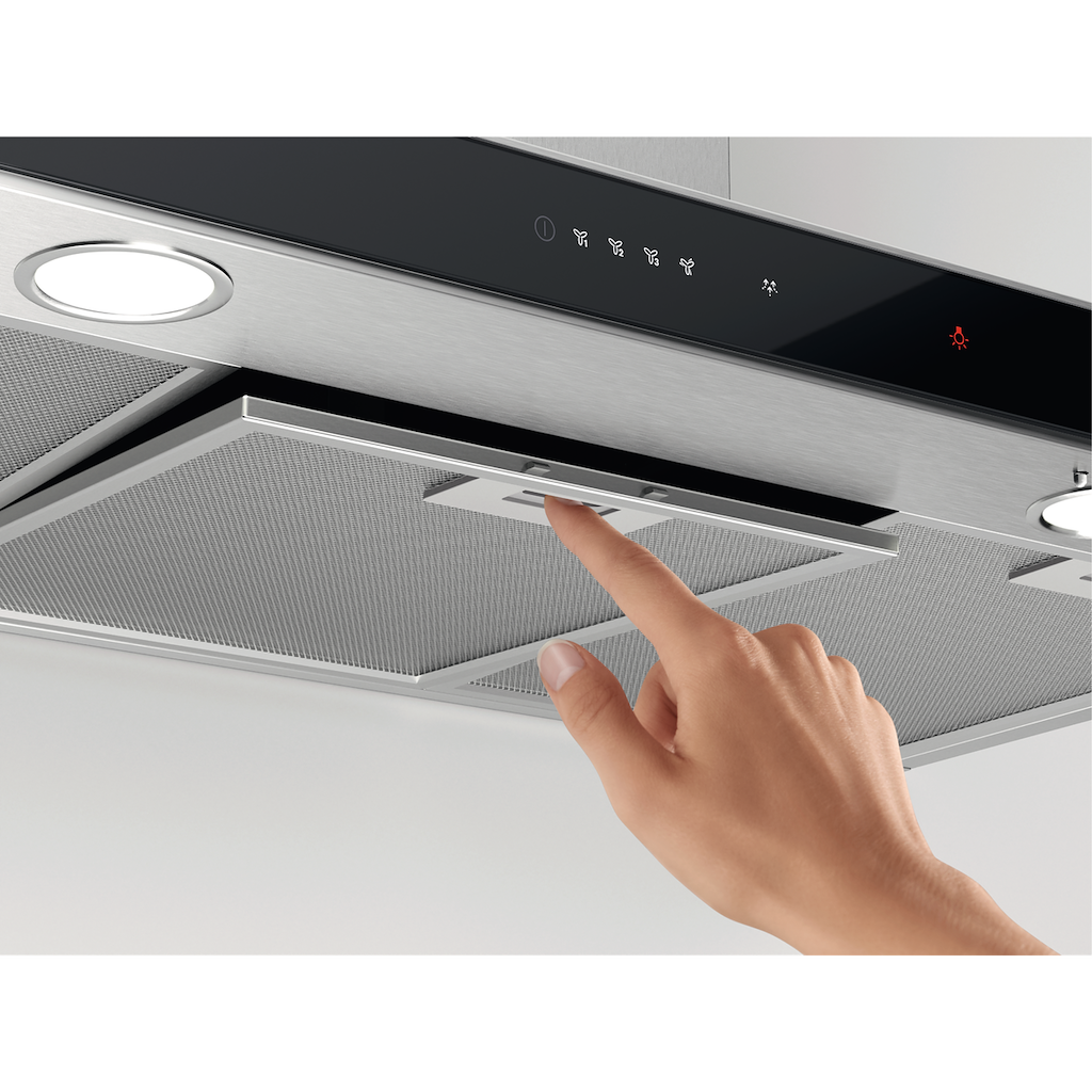 The glass screen on the hood is touch-sensitive. Letting you choose the perfect settings with just a tap. And because there are no knobs or dials, it can be wiped down after cooking really easily, with a damp cloth.